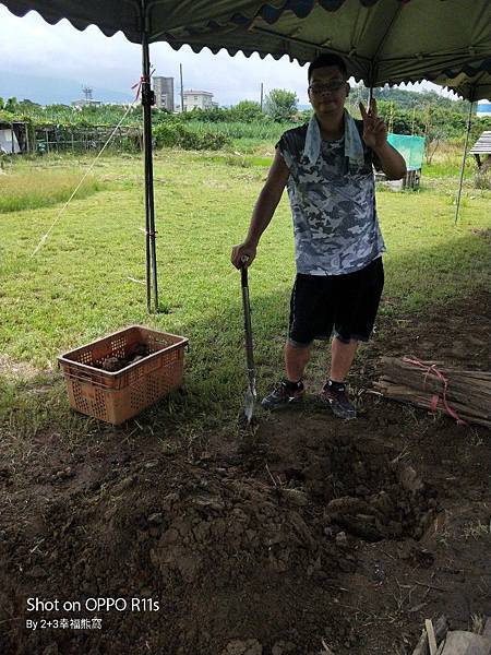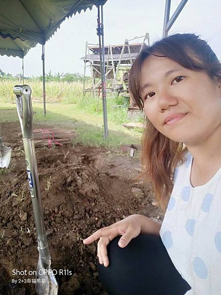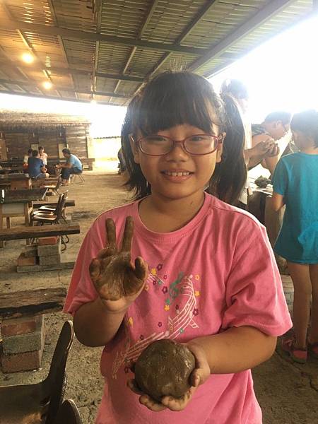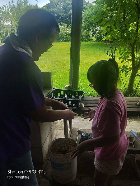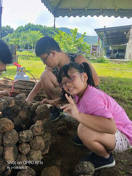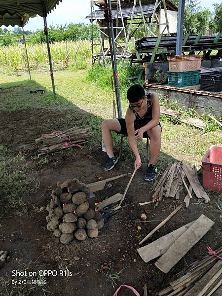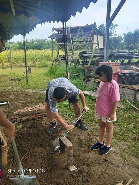 從9點多一直堆到快11點還沒搞定,基本上如果一直堆不起來農場人員會過來協助,剛好今天上午場做土窯的活動只有我們一組客人,所以人員讓我們慢慢玩,後來告訴我們把洞重挖小一點在重堆試試。