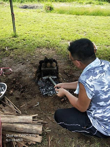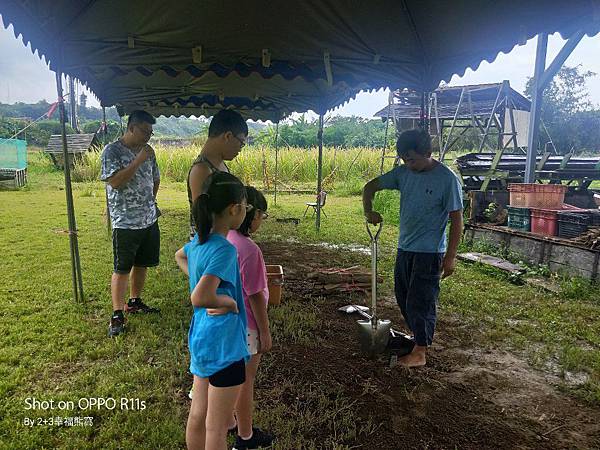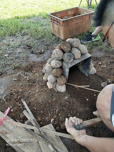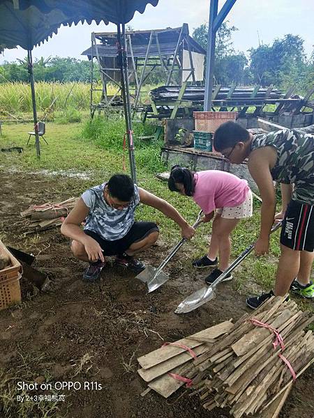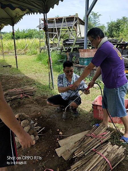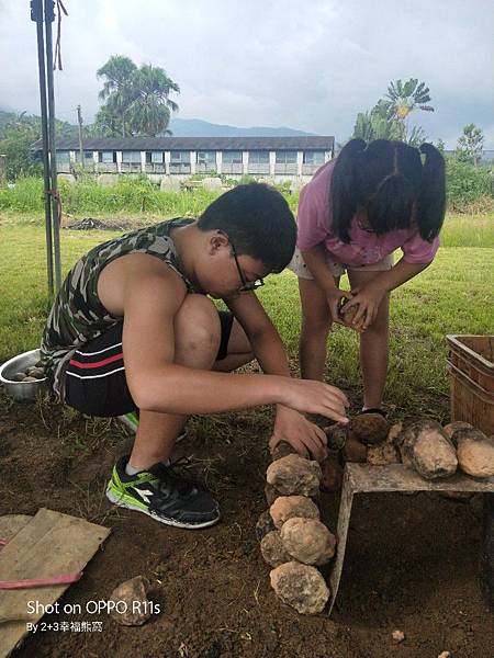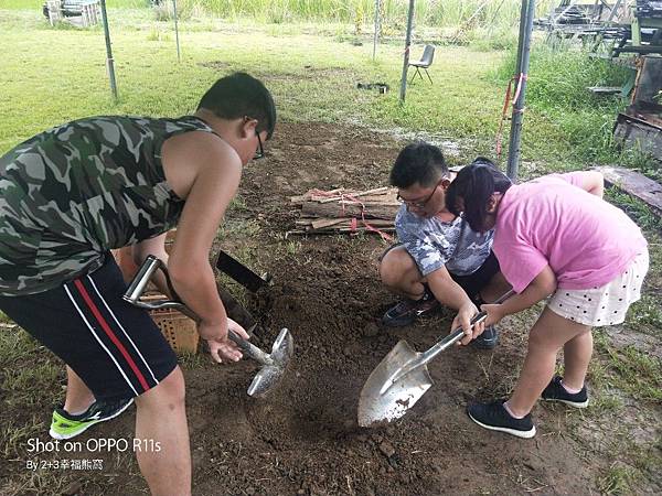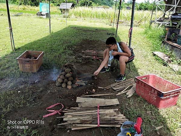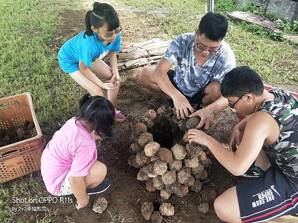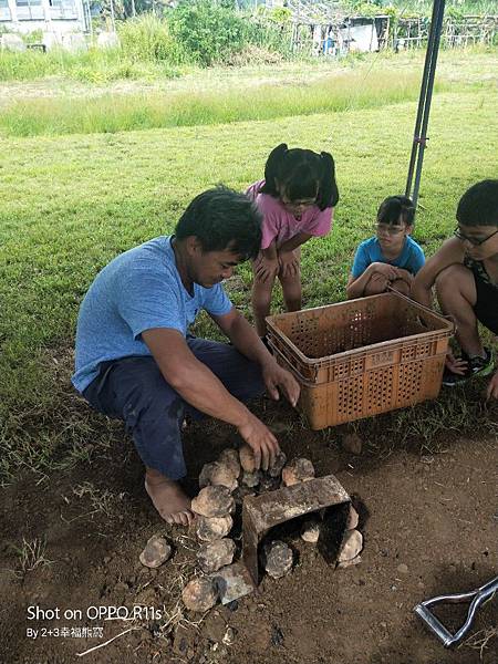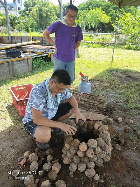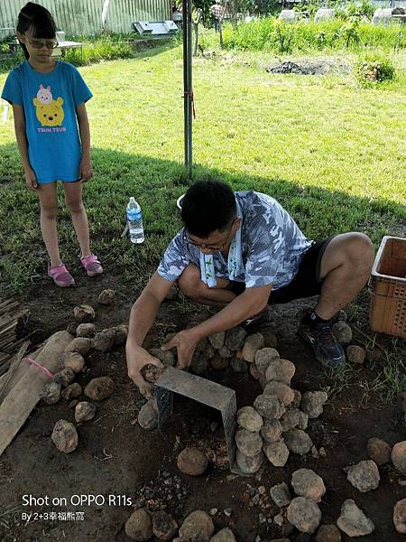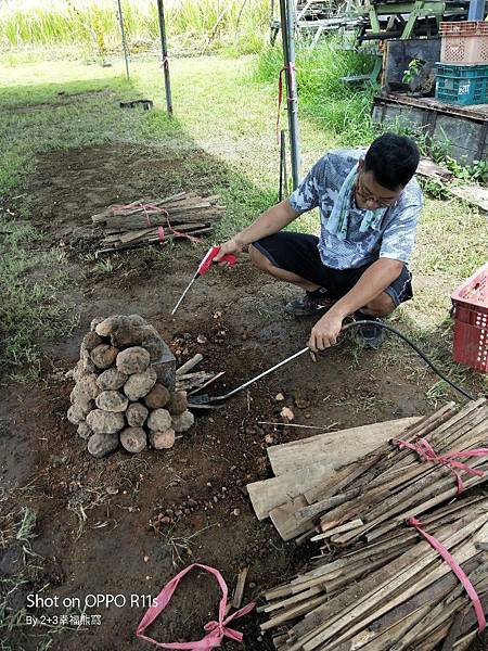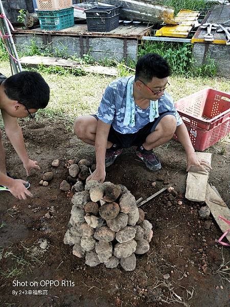 大概先講解一下怎麼挖地、挖多深多寬,然後示範如何堆窯,之後就要自己動動手囉。