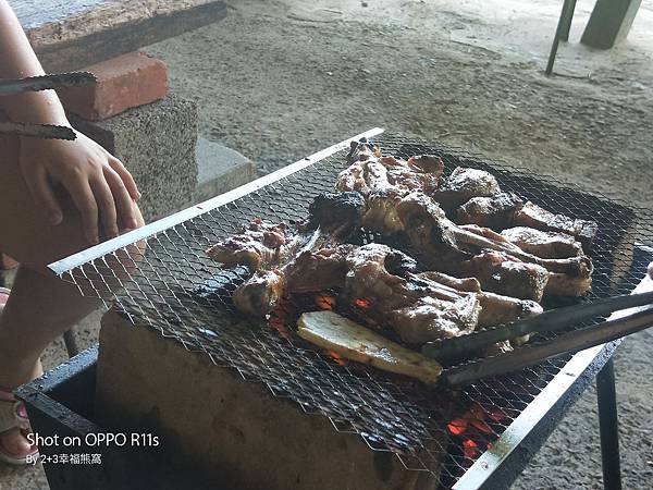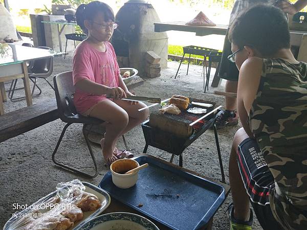 讓熊寶們自己烤肉也是個樂趣,只是這雞腿被烤得好像"鳥仔巴"哦~😧😧