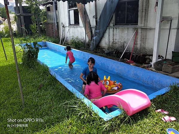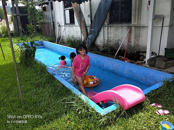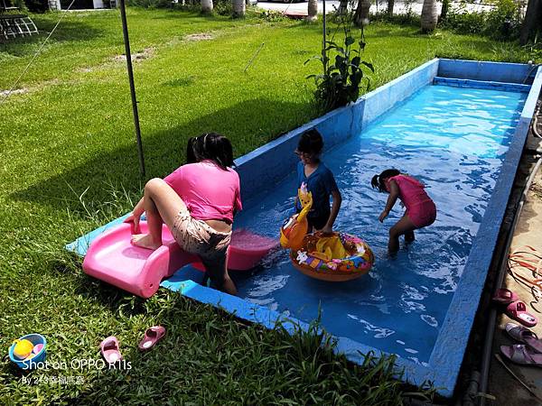 小小的遊戲戲水池就在烤肉區旁邊,小妞們一邊吃烤肉一邊玩水,玩得不亦樂乎,戲水池上方也有用簡易帳篷搭建正中午玩水不怕曬傷。
