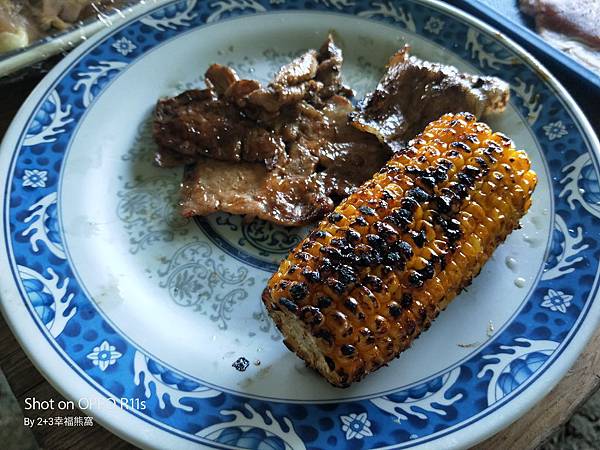 特寫拍一下熊拔的烤玉米,烤得還不賴。