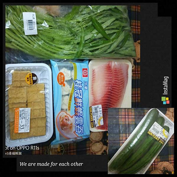 先來看看這次我買了那些食材,小黃瓜$29,鯛魚片$73,油豆腐$33空心菜$23,桂冠鮮蝦雲吞32
